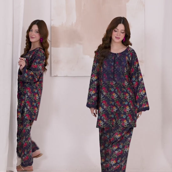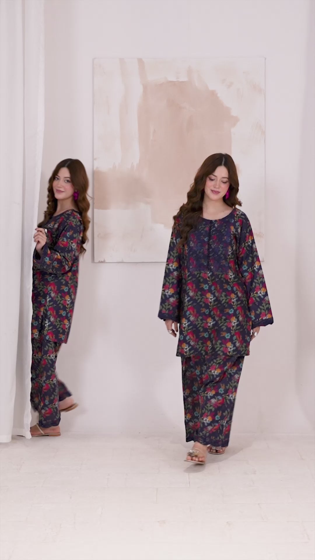 Soft florals meet deep hues in Twilight Fleur, a two-piece embroidered co-ord crafted from 100% premium printed lawn. The purple-toned floral pattern is enhanced by delicate embroidery on the neckline, sleeves, and shalwar edge, bringing a touch of quiet luxury to everyday wear. With its relaxed silhouette and breathable fabric, it’s the perfect balance of comfort and effortless sophistication, made to move with you from day to dusk.